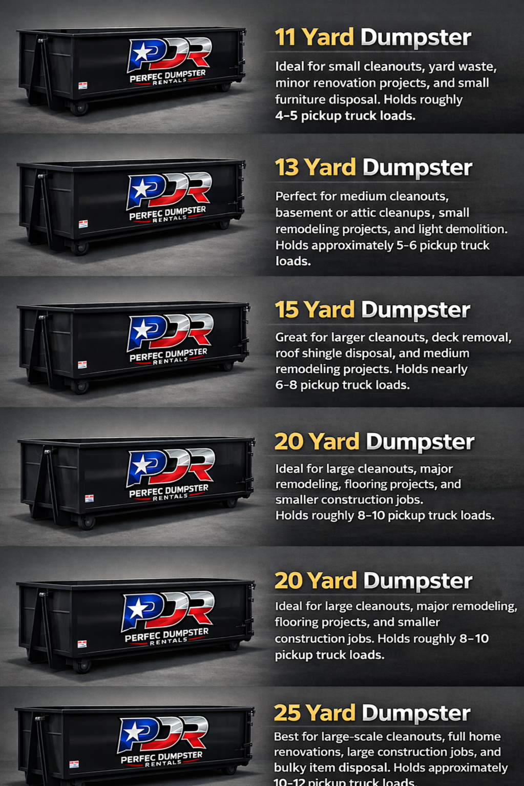 Look no further — Perfec Dumpster Rentals proudly serves all of DFW. Whether your project is residential or commercial, PDR provides reliable dumpster services tailored to your needs. Call us or complete the request form to book today.